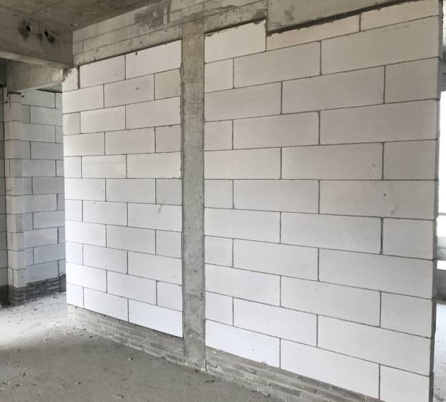 標(biāo)準(zhǔn)層采用高精度砌塊,利用薄砌法砌筑,提高砌筑質(zhì)量,達(dá)到薄抹灰要求。且高精度砌塊施工無需頂磚,可大大縮短工期,提前交付精裝修施工。