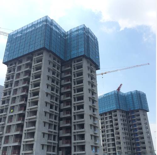 裝配式建筑采用全鋼龍骨及穿孔鋁板,提升系統(tǒng)由電腦全自動控制,大大提升安全性能,同時(shí)縮短提升時(shí)間,安全防護(hù)到位及時(shí)。